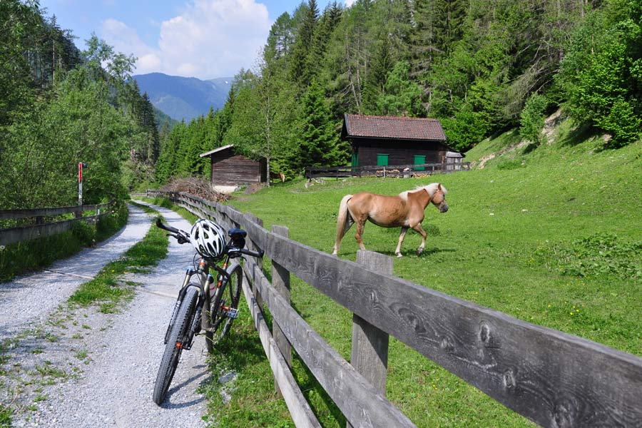 Diese leichte, familienfreundliche Route beginnt auf dem Wipptal Radweg bei der Hauptschule Matrei und zweigt ins Navistal ab, wobei die Strecke leicht ansteigend wird und sich entlang des Naviser Baches und vorbei an der Naviser Kirche ins hintere Navistal schlängelt.