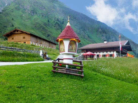 Ein rauschender Wildbach, blühende Almwiesen und mächtige Berggipfel begleiten Radfahrer vom Ortsteil Milders bis zum Talschluß bei der Oberissalm. Der asphaltierte Weg führt vorbei an Bergbauernhöfen und Almen mit zahlreichen Bänken für kurze Zwischenstopps. Spätestens beim Parkplatz an der Oberissalm heißt es aber umkehren und auf dem gleichen Weg zurückrollen oder den Drahtesel stehen lassen und zu Fuß weiter bis zur Franz-Senn-Hütte (ca. 1,5 h) oder zum Rinnensee (ca. 3 h,) gehen. So oder so – ein Tiroler Schmankerl vorher unbedingt noch genießen.