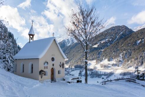Der Winterwanderweg von Kappl Dorf bis zur Rotwegkapelle ist zwar aufgrund seiner Steigungen etwas anspruchsvoller – belohnt dafür aber mit atemberaubender Aussicht. Los geht’s am Dorfplatz Kappl. Unterhalb der Kirche wandert man in Richtung Hotel Dorfstadl zur Abzweigung Diasbahn.
