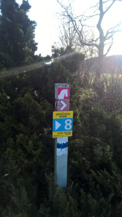 Die Grasslmühlrunde ist durchgehende mit einer weißen 8 auf blauem Grund gekennzeichnet