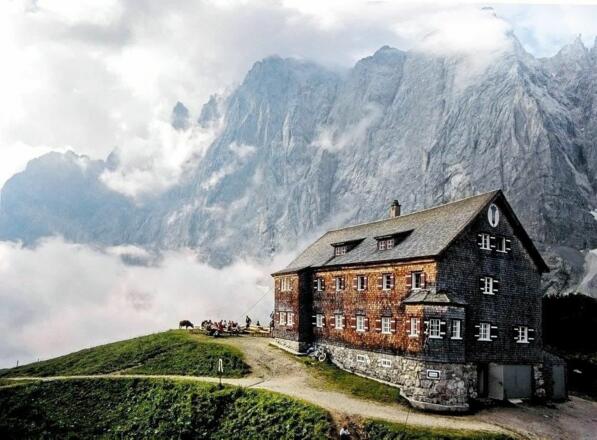 - Die Falkenhütte liegt direkt unter den steil aufragenden Laliderer Wänden. Diese Steilwände sind seit mehr als 100 Jahren ein Eldorado für Alpinkletterer. Der „Kleine Ahornboden“ liegt in einem Becken ebenfalls in Reichweite der felsigen Riesen.
