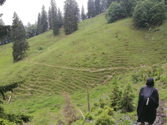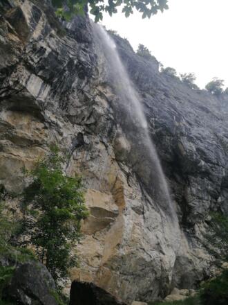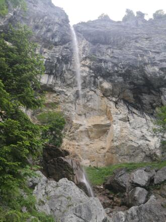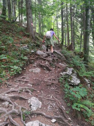 Per Taxi oder Mitfahrgelegenheit gelangen wir zur Aschingerkapelle. Dort startet der Weg relativ steil zuerst über eine Forststrasse, danach gelangen wir über einen wurzeligen und steinigen Weg zum Schleierwasserfall. Das ist zugleich auch der Einstieg in den Adlerweg, den wir in Richtung Westen in einem stetigen Auf und Ab folgen. Der Weg ist anspruchvoll und Trittsicherheit ist erforderlich. Die weiteren Stationen sind Obere Regalm, brennender Palven, Bergsteigergrab und schliesslich die Gaudeamushütte. Nach einem kurzen Einkehrschwung weiter zur Wochenbrunner Alm und schliesslich nach Ellmau.
