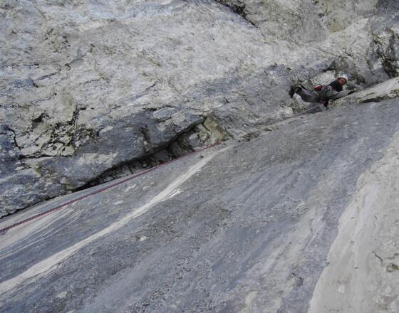 Das Kolosseum befindet sich an der Südwestseite der Hohen Munde, die Route "Alte Telfer ist die schwerste Route in diesem Wandteil und checkt mit dem Schwgr. 8b ein, obligat 8+!