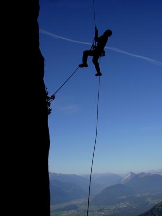 Abseilen über die Route und stellenweise über eine eigens eingerichtete Abseilpiste. Das Abseilen über diese Route ist anspruchsvoll und eine beeindruckende "Luftfahrt."