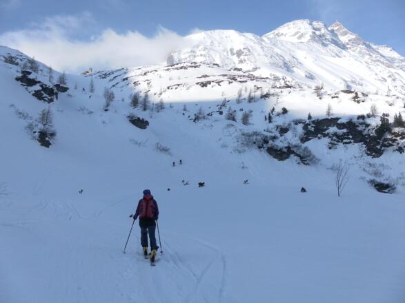 Der Anstieg bis oberhalb des Naturfreundehaus Neubaus ist identisch mit dem zum Sonnblick und dementsprchend gut frequentiert. Darüber kann man meist die Einsamkeit genießen und wird meist selber spuren dürfen. Der Gipfelhang ist steil und schrofig. Nur bei üppiger Schneelage und sicheren Bedingungen ist der Gipfel des Altecks mit angeschnallten Ski erreichbar.