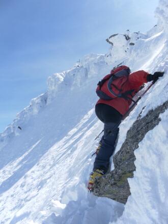 Schitourenausrüstung, evtl Steigeisen für den Grat.