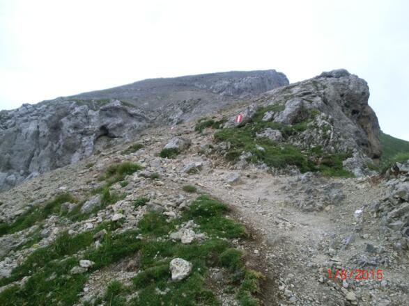 Teils über breite Schotterwege aber auch enge Steige zum Sonnjoch bis zur Lamsenjoch Hütte.