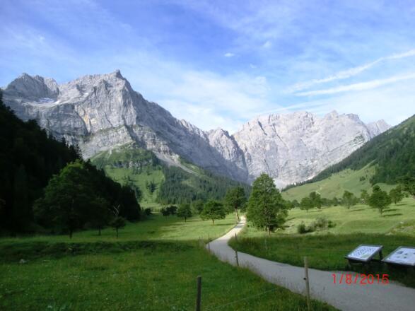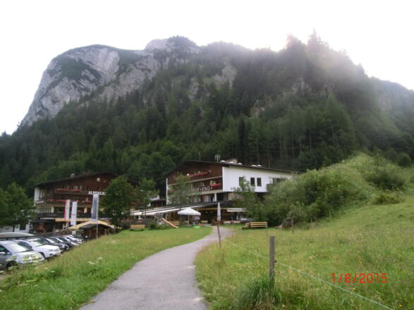 Wir lassen das Auto am Alpenhof im Rißtal stehen ( oder man kommt gleich mit dem Bus angereist und fährt bis zur Engalm ). Ab hier wäre die Straße ohne hin gebührenpflichtig. Ab dem Alpenhof fährt man mit dem Bus oder per Anhalter bis zum ende des großen Ahornbodens durch das Risstal bis zum Alpengasthof Eng.