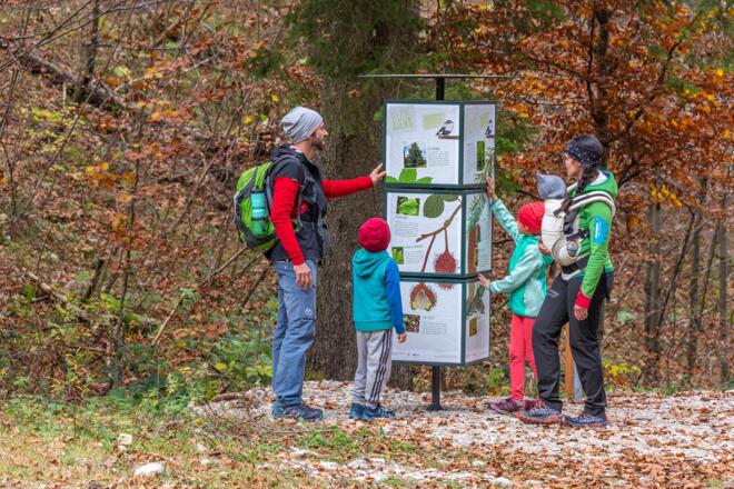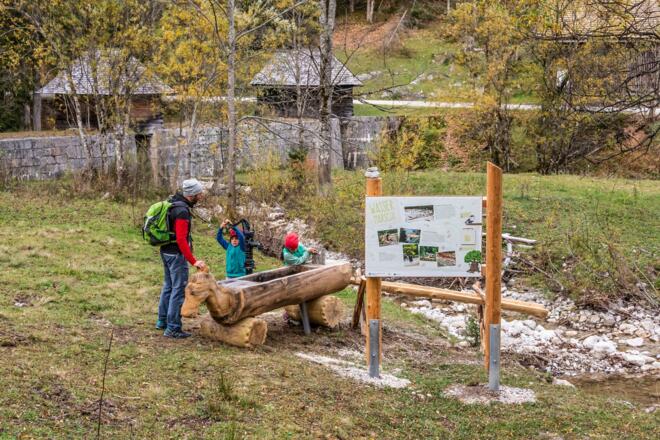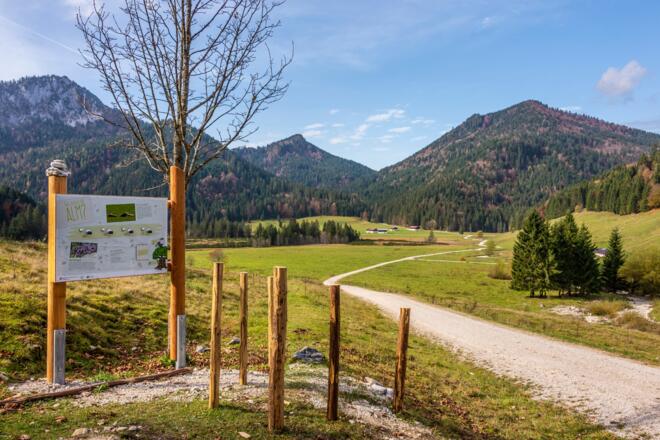 Auf der Tour über die Öfen ins sonnige Hochmoor der Röthelmoosalmen kommen alle ins Staunen. Das liegt daran, dass es auf den 16 Stationen des Bergwalderlebnispfades nicht nur für Kinder viel zu entdecken gibt: Schotter sortieren, Bäume, Vogelstimmen und Tierspuren bestimmen oder die Holztrift selbst ausprobieren. Der Erlebnispfad wurde entwickelt und konzeptioniert um Mensch und Natur wieder näher zusammenzubringen. Und wo ginge das besser als hier im dichten Bergwald, auf romantischen Wegen und durch die noch traditionell mit Viehwirtschaft genutzten Almflächen? Da versteht sich eine Einkehr in der traumhaft gelegenen und bewirtschafteten Dandl- oder Langerbauer Alm ganz von selbst.