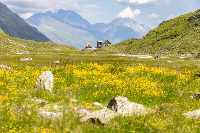 Aus der letzten Eiszeit stammende, rundgeschliffene Felsplatten prägen teilweise den Wanderweg. Urige Almen und die Franz-Senn-Hütte laden zum Einkehrschwung.