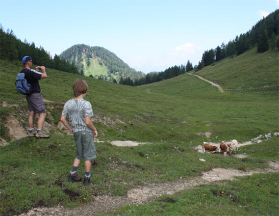 Kleine Bergtour - leicht erreichbarer Gipfel im Nationalpark-Kalkalpen- durch Wälder, über Almen und Latschenfelder - vom Einstieg bis zum Gipfel in Serpentinen steil steigender Weg - traumhafter Ausblick vom Reichraminger Hintergebirge zum Toten Gebirge