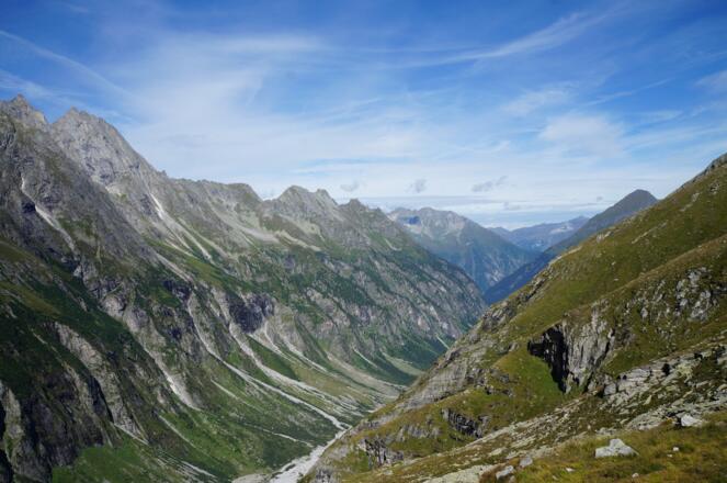 Von der Materialseilbahn der Greizer Hütte startet der etwas steilere Ansteig hinauf zur Greizer Hütte.
