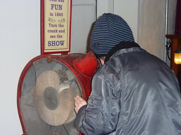 Aktualität, Unterhaltung und Nervenkitzel ohne Fernsehen wie zum Beispiel Darbietungen mit der Laterna magica: Reiseabenteuer im 19. Jahrhundert, Märchen für Jung und Alt. Überraschung in der Camera obscura, Blick in die Wundertrommel: Der Mann, der den Kopf verliert. Ein Geisterpianist spielt Boogie-Woogie und vieles mehr!