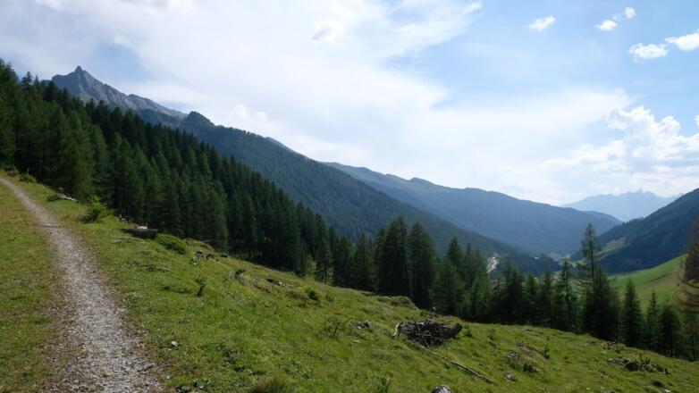Vom Weiler Glinzen aus gehts erst über lichten Lärchenwald und Almwiesen stetig aufwärts zur Seealm, die unterhalb des Gipfels in einem großen Kessel liegt. Nach kurzem Aufstieg im Kessel führt der schön angelegte Weg übers Grat auf die Westseite, wodurch der Blick auf den Weiler Toldern und das Wildlahnertal frei wird. Noch ein paar Serpentinen sind zu überwinden bevor man schließlich den Gipfel erreicht. Hier erwarten den Bergsteiger das nahe thronenden Olperermassiv sowie tolle Ausblicke auf das Schmirntals und die formschönen, spitze Gipfelpyramide der Hohen Warte ("Hoger").