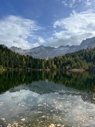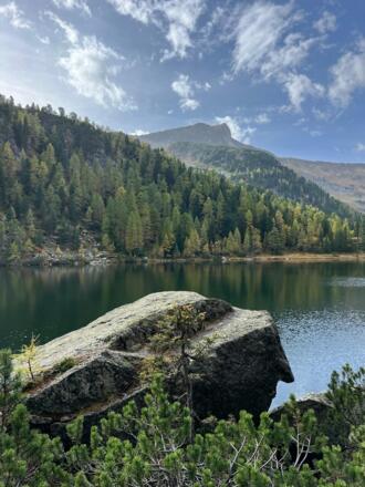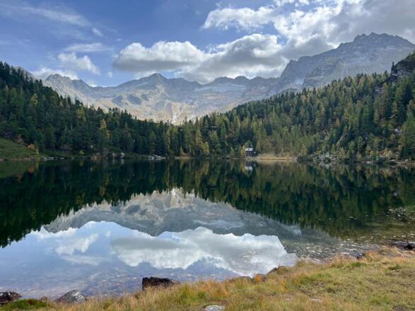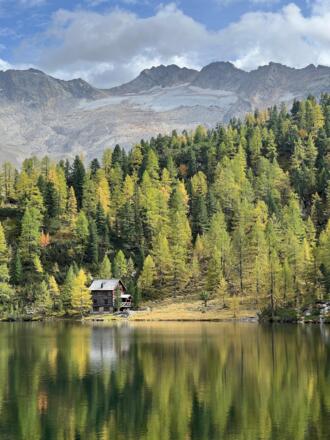 Eingebettet im jahrhundertealten Bergwald erstreckt sich der Reedsee auf einer Höhe von 1.831 Metern in einer idyllischen Waldlichtung, die sich zu den majestätischen Gipfeln der Tischlergruppe erstreckt. In der ruhigen Oberfläche des Wassers kann man die bezaubernden Spiegelungen der Bäume, der Berge und der Gletscher entdecken. Diese Wanderung ist für viele Einheimische ein jährliches Highlight, besonders in den Herbstmonaten, wenn sich die atemberaubende Schönheit dieses Bergsees in ihrer ganzen Pracht präsentiert.