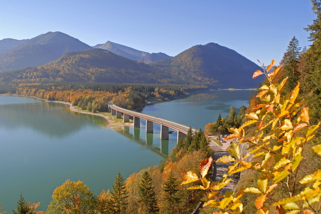 Mit dem Zug (BRB) nach Lenggries, weiter mit der RVO Linie 9569 (Bergsteigerbus) bis Sylvensteinsee (Mitte Juni-Anfang Oktober)