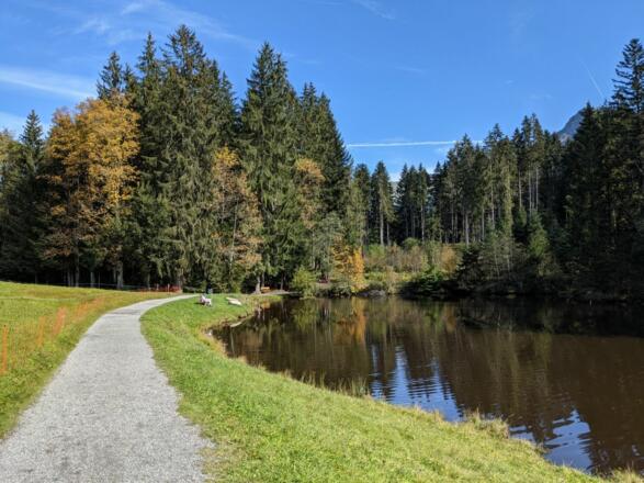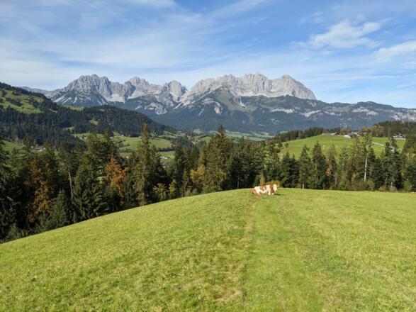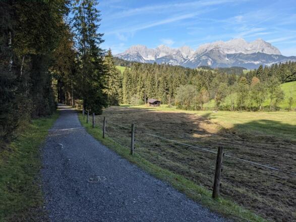 Vom Wiesenweg führt die Runde in Richtung Elsenstätt, wo die ersten Bänke beim Naturdenkmal "Veiten-Eiche" einen einzigartigen Ausblick auf Reith, die Kitzbüheler Südberge und berühmten Hahnenkamm gewähren. Über die drei Weiher - Gieringer Weiher, Vogelsberger Weiher und Hasenberg Weiher, gelangt man zu den Höfen Hörpfinghof und Stall Lehen. Der Höhepunkt der Route ist der Rettenberg mit seinem 360° Ausblick. Von dort weiter Richtung Kohlhofen, Hausermühle und durch den Hauserwald bis zur Reither Pfarrkirche „Zum heiligen Ägidius“.