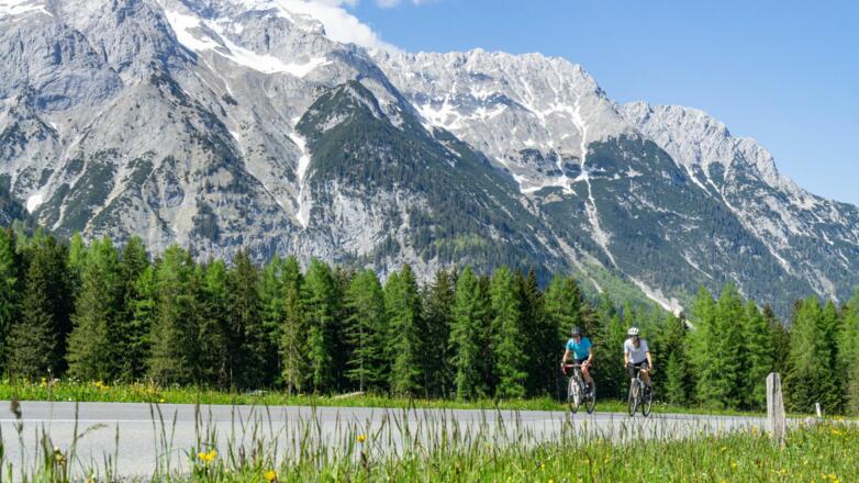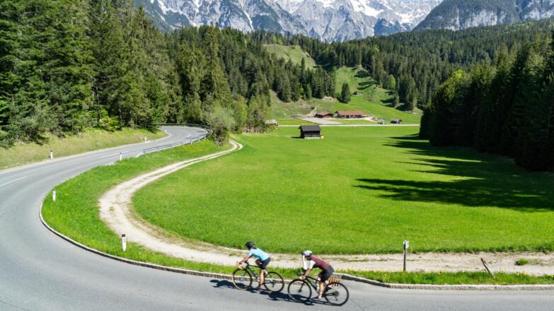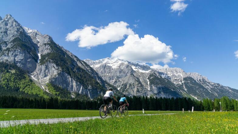 Vom Startpunkt bieten sich dann zwei Möglichkeiten: Entweder auf feinstem Asphalt durch die Ortschaften und das Leutaschtal oder auf der breiten Schotterstraße entlang der türkisblauen Leutascher Ache. Bei Reindlau begegnet man auf beiden Wegen dem Campingplatz und strampelt (wieder wahlweise auf Asphalt oder Schotter) dann weiter bis zum gemütlichen Gasthof Mühle in Burggraben. Natürlich bietet sich hier auch eine köstliche kleine Stärkung an, bevor es über Schanz asphaltiert weiter bis zur sagenumwobenen Leutascher Geisterklammgeht.