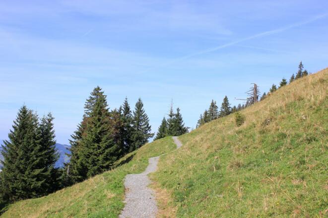 Durchgehend „rennbare“ Strecke in Mittelgebirgshöhe (max. Seehöhe - 1600m) mit sensationeller Sicht auf weite Teile des Bregenzerwaldes, dessen imposante Bergwelt und den Bodensee.