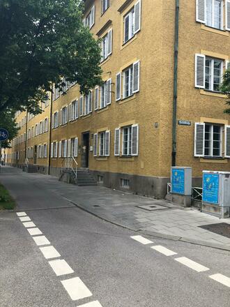 Startpunkt B2R nach Norden. Ausfahrt Moosach/ Zentrum nehmen und 350m weiter geradeaus auf der Landshuter Allee. Danach links halten und halb links auf die Dachauer Str. abbiegen und der Straße 550 m lang folgen. Das Ziel befindet sich rechts.