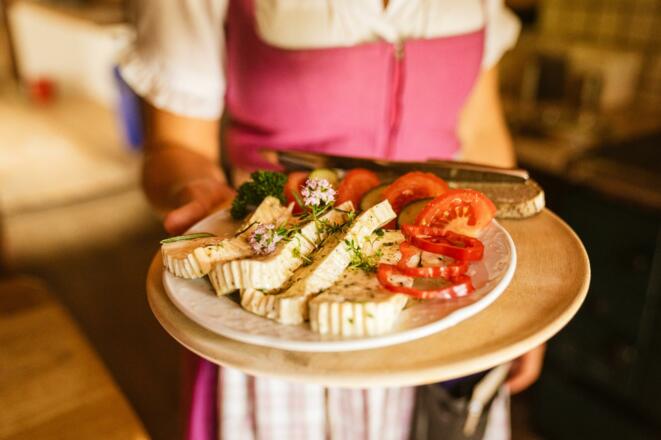Angekommen an der Brander Alm gibts almtypische Brotzeiten, Kuchen und Kaiserschmarrn.
