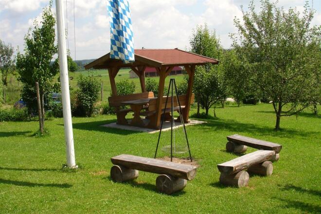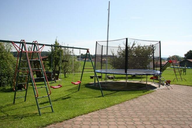 Gemütliche, freundliche Ferienwohnung in ruhiger, erholsamer Lage mit Bergblick, 2 Schlafzimmer und Sat-TV. Gartenlaube mit Spielwiese, Trampolin, Tischtennis und Fußballplatz.