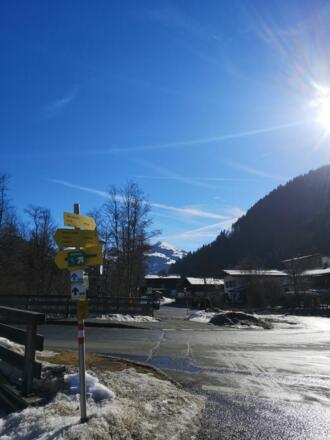 Diese einfache Winterwanderung startet beim Tennisstadion in Kitzbühel und führt uns entlang der Achenpromenade bis nach Aurach. Über den wunderschön angelegten Golfplatz Eichenheim führt die Wanderung durch einen Buchenwald hinauf bis zum Reitstall Mauring. Vom Reitstall Mauring geht es nur noch Bergab, ständig mit Kitzbühel im Blick, zurück zum Tennisstadion.
