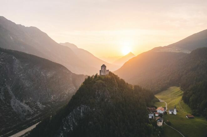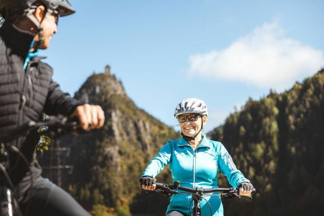 Die Burgenrunde führt über den Innradweg zur Ruine Kronburg und zum Schloss Landeck.