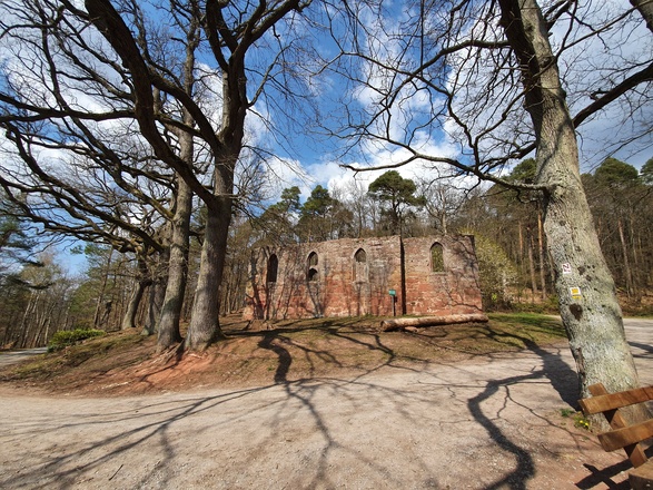 Der Centgraf war ein vom Landesherrn - dem Mainer Erzbischof - eingesetzter Beamter, der an der Spitze der Cent Bürgstadt (Gerichtsbezirk) stand und auch die Landesverteidigung organisierte. Als solcher amtete 1625 - 1655 Leonhard Gackstatt. Dieser begann 1630 mit dem Bau einer Kapelle am Wannenberg, deren Türsturz die Jahreszahl "1630" trägt. Wegen des Schwedeneinfalls ein Jahr später blieb die Kapelle jedoch unvollendet.Die eindrucksvolle Ruine steht am Beginn des "Historischen Wanderwegs", der zu zahlreichen Steindenkmälern (Heunsäulen, Sarkophag- und Mühlsteinfragmente) führt - Zeugen mittelalterlicher und frühneuzeitlicher Steinbearbeitung am Wannenberg. Die handwerkliche Mühlsteingewinnung wurde dort noch bis nach 1900 ausgeübt.