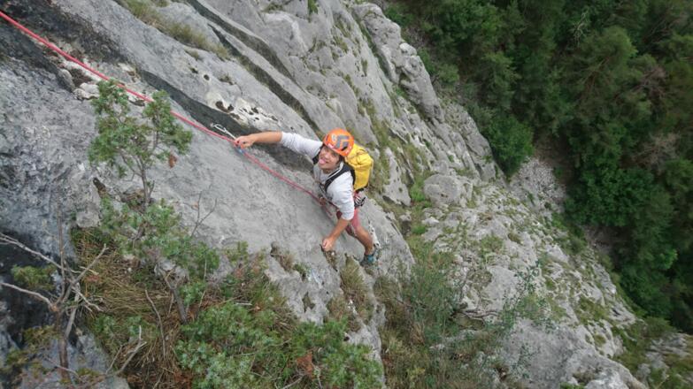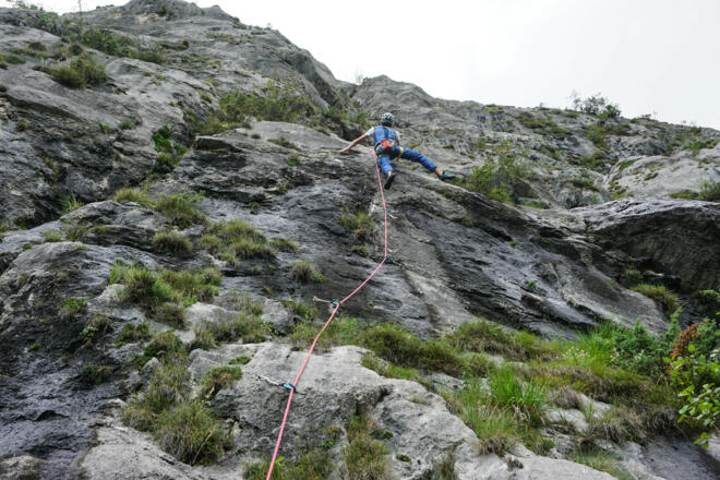 Die Route war tw. sehr grasig und die Putzarbeiten sind noch nicht abgeschlossen. Am Einstieg befinden sich Utensilien. Motivierte Wiederholer sind gerne eingeladen etwas beizutragen. Ein bischen putzen durch den jeweiligen Nachsteiger, oder sogar ein Abseilen über die Tour werden sehr wertgeschätzt.