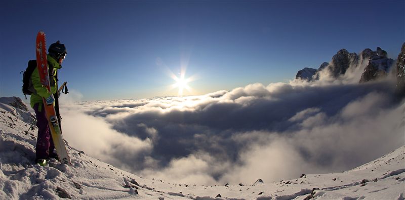 Auf der Tour dabei sein müssen: LVS Gerät, Handy, Schaufel, Lawinensonde, Erste Hilfe Kit, Ausreichend Nahrung und Getränke, Evtl. zusätzliche Bekleidung zum Wechseln.