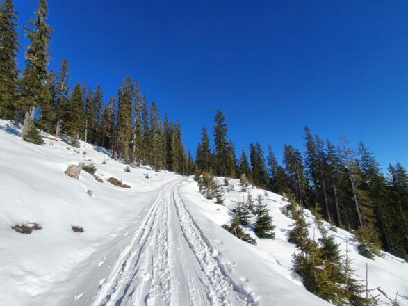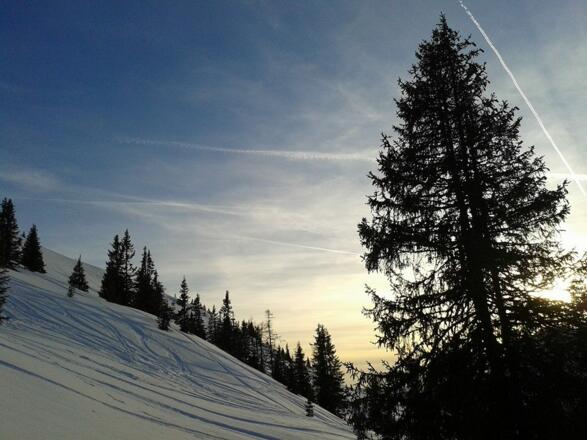 Da der Weg entlang der Skipiste führt, achten Sie bitte stetig auf Skifahrer, Snowboarder, usw...