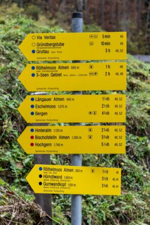Bergwald-Erlebnispfad Röthelmoos ab/bis Urschlau vermittelt in 16 interaktiven Stationen alles Wissenswerte rund um den Bergwald und die Zusammenhänge zwischen Mensch und Natur. Absolut empfehlenswert! (zwischen Station 3 und 6 steil, steinig und schmal und daher nur bedingt kinderwagentauglich).