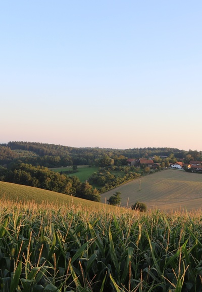 Von hier aus hat man einen herrlichen Panoramablick auf Kuppen und Höhen der Umgebung und eine besonders lohnende Sicht in das Inntal bis zum Sauwald. Aus dem Gesamtbild auf bayerischer Seite ragen besonders die beiden Kirchen von Aigen heraus und am österreichischen Ufer des Inns erkennt man das ehrwürdige Chorherrenstift von Reichersberg.