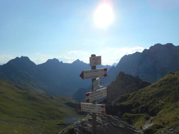 Achten Sie auf den herrlichen Blick, den Sie auf den Monte Peralba (Hochweißstein) und Hochalpl haben. Wenn Sie einen Blick ins Lesachtal werfen, sehen Sie St. Lorenzen und darüber die Lienzer Dolomiten. (Wenn Sie die Wanderung von Lienz nach Sappada gehen, wählen Sie bei der Alpenvereinshütte den leicht links wegführenden/abzweigende Weg. Vorsicht, nicht den unteren Steig nehmen, er geht auf´s Luggauer Thörl).