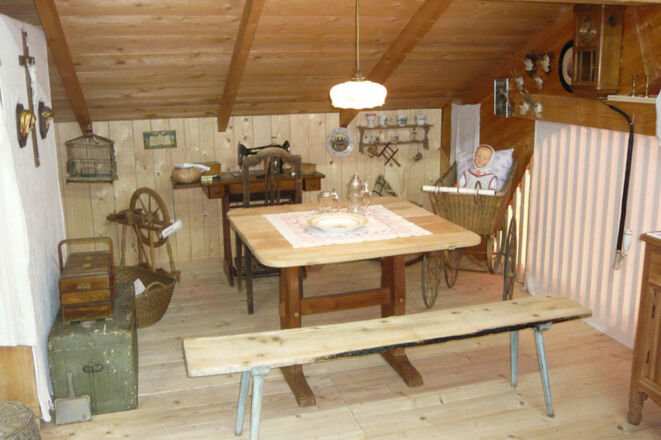 Von der Mehlsackausklopfmaschine , der Sägeige, über Großvaters Pfeifensammlung oder Omas Küchengerätschaften bis zur Dreschmaschine, dem ersten selbstfahrenden Mähdrescher, kann sich jeder informieren. Schulzimmer, Stub`n, Kammer, Bad- Stub`n und Feuerwehrutensilien und vieles anderes sind zu bestaunen.