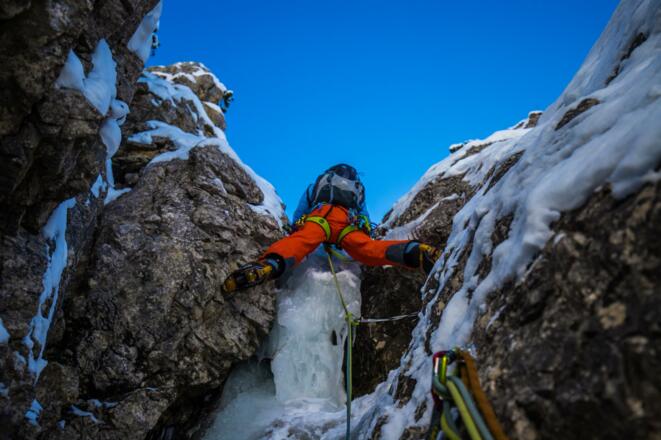 Dornröschen ist die Nachbarroute von Zwergentanz (WI4- und M4). Sie ist super um ins leichte Mixedklettern (wieder) reinzukommen.
