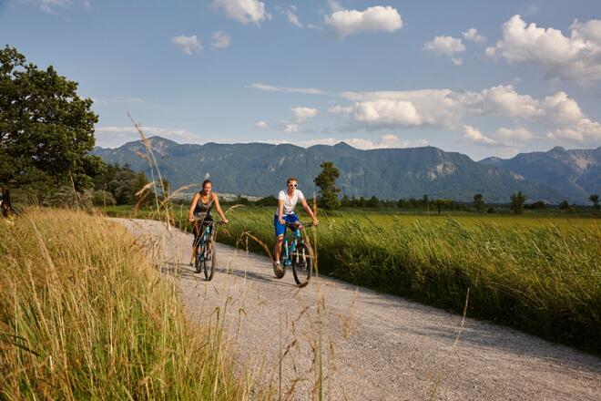 Landschaftlich reizvolle Tour entlang der Loisach mit Alpenpanoramablick und durch das Naturschutzgebiet Murnauer Moos.