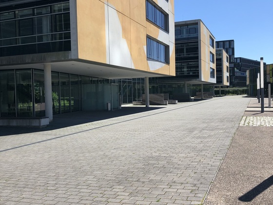 Wieder am Fahrrad angekommen fährt man nun die Riesstrasse weitere 350 m gerade aus. Auf der linken Seite kann man das Berufsschulzentrum und weitere 170 m gerade aus das 88 North betrachten.