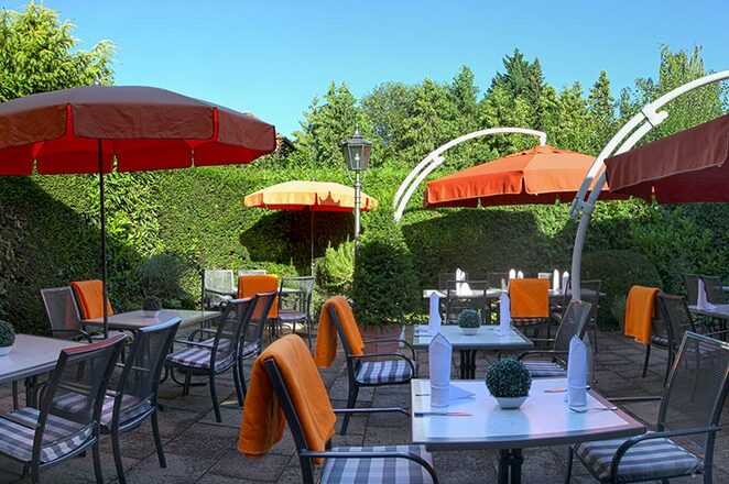 Wenn es die Witterung zulässt steht die idyllische Sommerterrasse zu Ihrer Verfügung, sie bietet Platz für ca. 50 Personen. Kommen Sie einfach einmal vorbei und schlemmen Sie nach Herzenslust.
