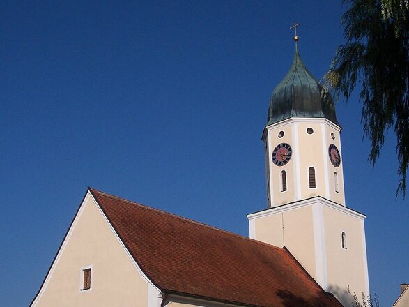 Die Chorturmanlage stammt im Wesentlichen wohl aus dem 15. Jahrhundert. Mitte des 18. Jahrhunderts grundlegende Erneuerung des Langhauses. Tafelbilder an der Emporenbrüstung Ende 17. Jahrhundert, hölzerne Apostelgruppe um 1500.