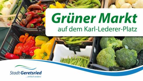 Der Wochenmarkt in Geretsried findet als Grüner Markt jeden Dienstag von 7.30 bis 12.30 Uhr auf dem Karl-Lederer-Platz statt.Achtung: Wenn der Montag ein Feiertag ist, entfällt der Grüne Markt am darauffolgenden Dienstag!