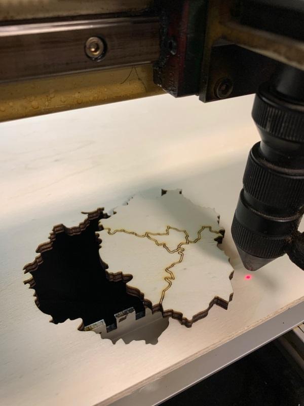 Die Heimat immer dabei! Gemeinsam mit dem brigk Makerspace wird die Region 10 am Lasercutter ausgeschnitten. Die Besucherinnen und Besucher am Pavillon der Region können ihren Wohnort markieren lassen und das Giveaway aus Holz anschließend mit nach Hause nehmen. (Nur solange der Vorrat reicht)
