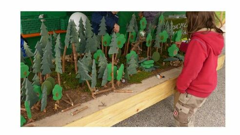 In einem Minimodell-Wald können Sie und ihre Kinder sich als FörsterIn versuchen und den Wald von morgen selbst gestalten.