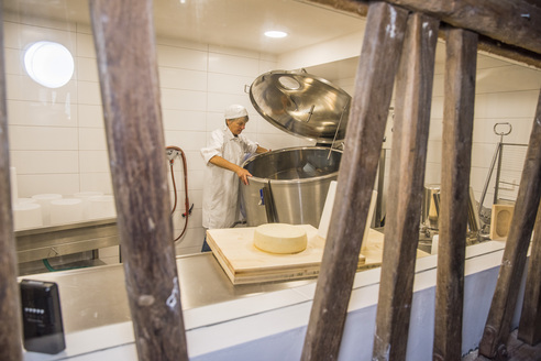 Riechen, fühlen, sehen und schmecken Sie die Verwandlung von der wertvollen Milch hin bis zum saftigen Käse.