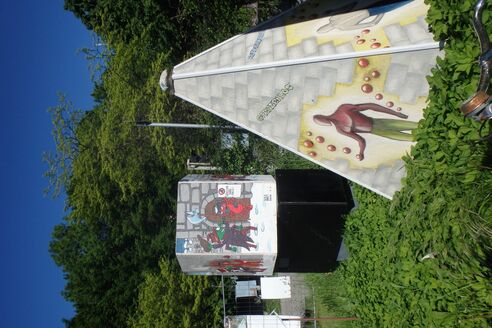Die Installation von Comicaze, welche zur internationalen Woche gegen Rassismus gestaltet wurde, ist nun im Skulpturenpark integriert und wurde beim Tag der Nachbarn eingeweiht, weitere Installationen vom Kunstforum HMP bilden einen kleinen Skulpturenpark.