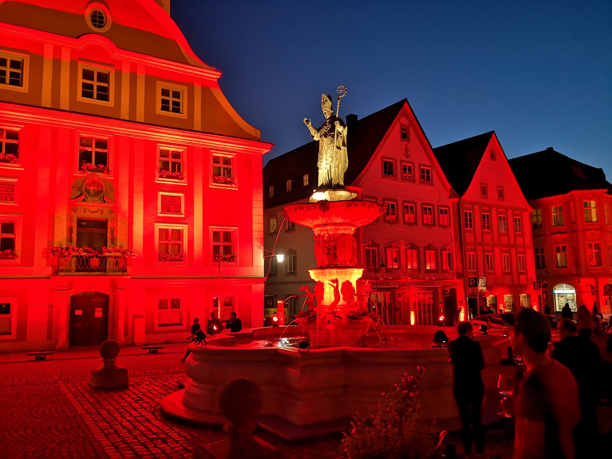 Mit der Bitte um staatliche Unterstützungen setzten wir, die Firma DIESEL Ton + Lichttechnik, mit vielen Tausenden Mitbewerbern ein rotes Warnsignal in ganz Deutschland. Beleuchtet wurden überwiegend Gebäude und Plätze, die der Kultur gewidmet oder für entsprechende Veranstaltungen vorgesehen sind. Bei der ersten Night of Light wählten wir bewusst den Marktplatz mit dem zentralen Willibaldsbrunnen als Schauplatz der „Alarmstufe Rot“, wie auch das gleichnamige Bündnis einflussreicher Initiativen und Verbände der deutschen Veranstaltungswirtschaft heißt. Als Austragungsort für das beliebte Altstadtfest, die Volksmusiktage, dem Ostermarkt und weiteren Veranstaltungsformaten bietet der Marktplatz eine beliebte Heimatstätte, auf dem sich die Eichstätter gerne zusammen treffen.