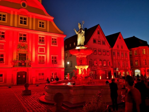 Schauplatz soll in diesem Jahr ebenfalls der Eichstätter Marktplatz sein. In den Fokus sollen dieses Mal vor allem das Rathaus sowie der Willibaldsbrunnen fallen. Zur roten Beleuchtung wird das Rathaus in diesem Jahr durch die Eichstätter Künstlerin Cendra Polsner mit einem unserer Beamer illuminiert. In guter Zusammenarbeit ermöglichten wir bereits in der vergangenen Adventszeit die Weihnachtsillumination des Bahnhofsgebäudes.