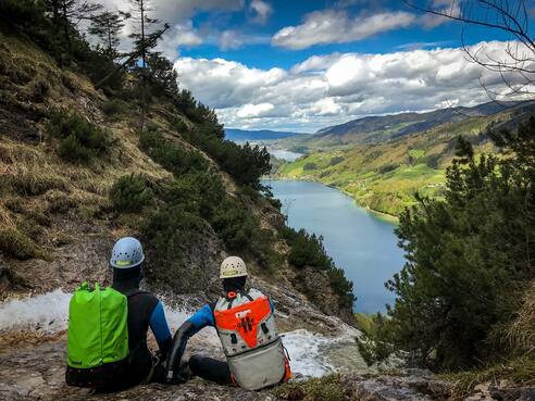 Rosittenbach – Am Untersberg Preis: 74.- Euro pro Person Teilnehmer: min. 4 Personen Exlusiv für 3 Personen: 125.- Euro pro Person inklusive Lunchpaket Dauer: ca. 8-9 Std. – ca. 6 Std. im Canyon (Anfahrt 30-45 Minuten) Definition: Spektakulärer Aufstieg über den Dobblersteig, Dauer ca. 1 Stunde. Alpiner Canyon mit mehreren Abseilstellen am Wasserfall in bis zu ca. 20 Meter Höhe, Kletterstellen, Rutschen, keine Schwimmstellen. Zum Ende sehr eng werdender Canyon. Besonderheit: Nach circa einer Stunde letzte Ausstiegsmöglichkeit, im unteren Teil kein Ausstieg möglich. Starke Verblockungen durch Holz. Anspruch: ***Für sportliche Einsteiger oder Fortgeschrittene Hier findet man weitere Details zur Tour.