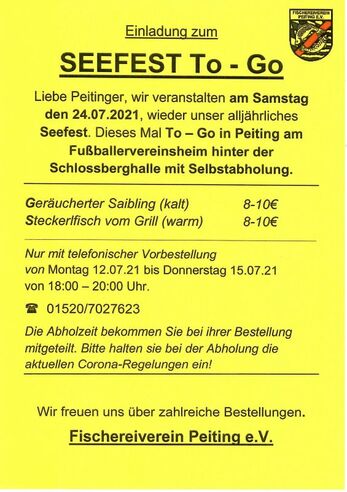 Am Samstag und Sonntag findet das traditionelles Fischerfest am Peitinger Deutensee mit Schmankerl vom Grill und Fischspezialitäten statt. Bootsrundfahrten auf dem See sowie Livemusik sorgen für gemütliche Stimmung.Eine gemütliche Radltour zum Deutensee mit anschließendem "Einkehrschwung" bietet sich an.